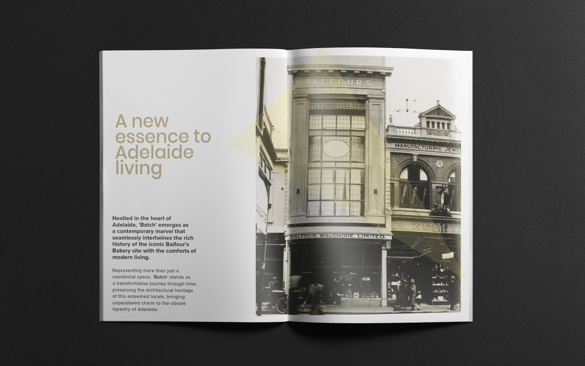 EDITORIAL A sales brochure for a new landmark residential address in Adelaide. Formerly a grand bakery with a rich heritage, the historic fuses with the modern within this iconic conversion.
